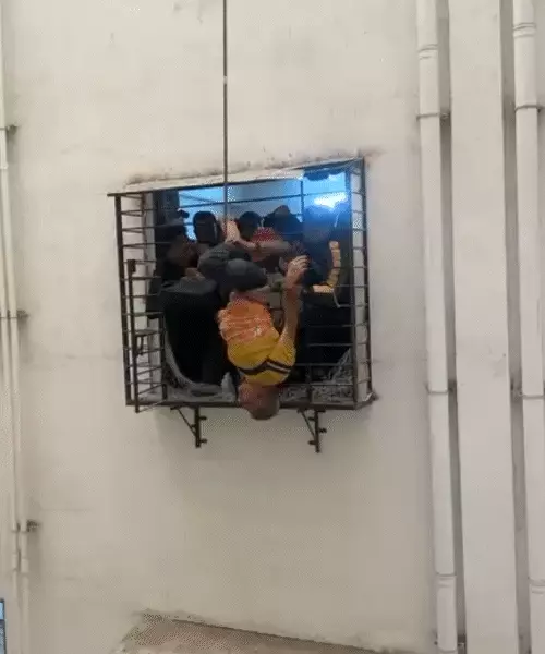સવારે 8 વાગ્યે શું બન્યું? રાંદેર ઝોનના જહાંગીરાબાદ ડી-માર્ટ પાસે આવેલા ‘ટાઈમ ગેલેક્સી’ બિલ્ડિંગના A બ્લોકમાં 10મા માળે રહેતા નીતિનભાઈ અડિયા (ઉંમર આશરે 57 વર્ષ) પોતાના ઘરની બારી પાસે સૂતા હતા. દરમિયાન અચાનક તેઓ બારીમાંથી નીચે પડી ગયા હતા. સદનસીબે તેઓ સીધા જમીન પર પટકાવાને બદલે 8મા માળે આવેલી બારીની બહારની જાળી અને છજાના ભાગે અટકી ગયા હતા. તેમનો પગ ગ્રિલમાં ખરાબ રીતે ફસાઈ ગયો હતો અને તેઓ હવામાં લટકી રહ્યા હતા.