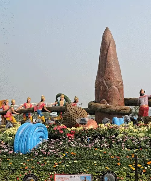'શાશ્વત ભારત' ઝોન ફ્લાવર શોનું મુખ્ય આકર્ષણ બનશે ભારતની પૌરાણિક ધરોહરને રજૂ કરતો 'શાશ્વત ભારત' ઝોન પણ ફ્લાવર શોનું મુખ્ય આકર્ષણ બનશે. આ આધ્યાત્મિક રીતે સમૃદ્ધ ઝોનમાં સમુદ્ર મન્થન, ગીતા સાર, ગોવર્ધન લીલા, ગંગા અવતરણ અને રામ સેતુ જેવા પૌરાણિક પ્રસંગોને ફૂલોના શિલ્પો દ્વારા કલાત્મક રીતે પુનઃરચિત કરવામાં આવશે, જે મુલાકાતીઓને ભારતની પ્રાચીન સાંસ્કૃતિક કથાઓ સાથે ફરી જોડશે. આ સાથે ભારતીય શાસ્ત્રીય અને લોકનૃત્ય પરંપરાઓને સમર્પિત ઝોનમાં કુચિપુડી, ભાંગડા, ગરબા અને કથકલી જેવા નૃત્ય સ્વરૂપોની સૌમ્યતા રજૂ થશે. આ ઝોનના કેન્દ્રમાં ભગવાન નટરાજનું ભવ્ય પ્રતિનિધિત્વ રહેશે, જે ભારતની કલાત્મક સમૃદ્ધિ, પરંપરાની સતતતા અને તાલની સર્વવ્યાપી ભાષાનું પ્રતીક બની રહેશે.