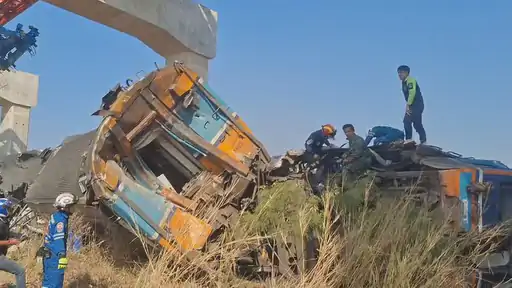 ચાલતી પેસેન્જર ટ્રેન પર વિશાળકાય ક્રેન પડી:થાઈલેન્ડમાં સ્કૂલનાં વિદ્યાર્થીઓ સહિત 22નાં મોત, 79 ઘાયલ, ઘણા ડબ્બા પાટા પરથી ઉતરી ગયા