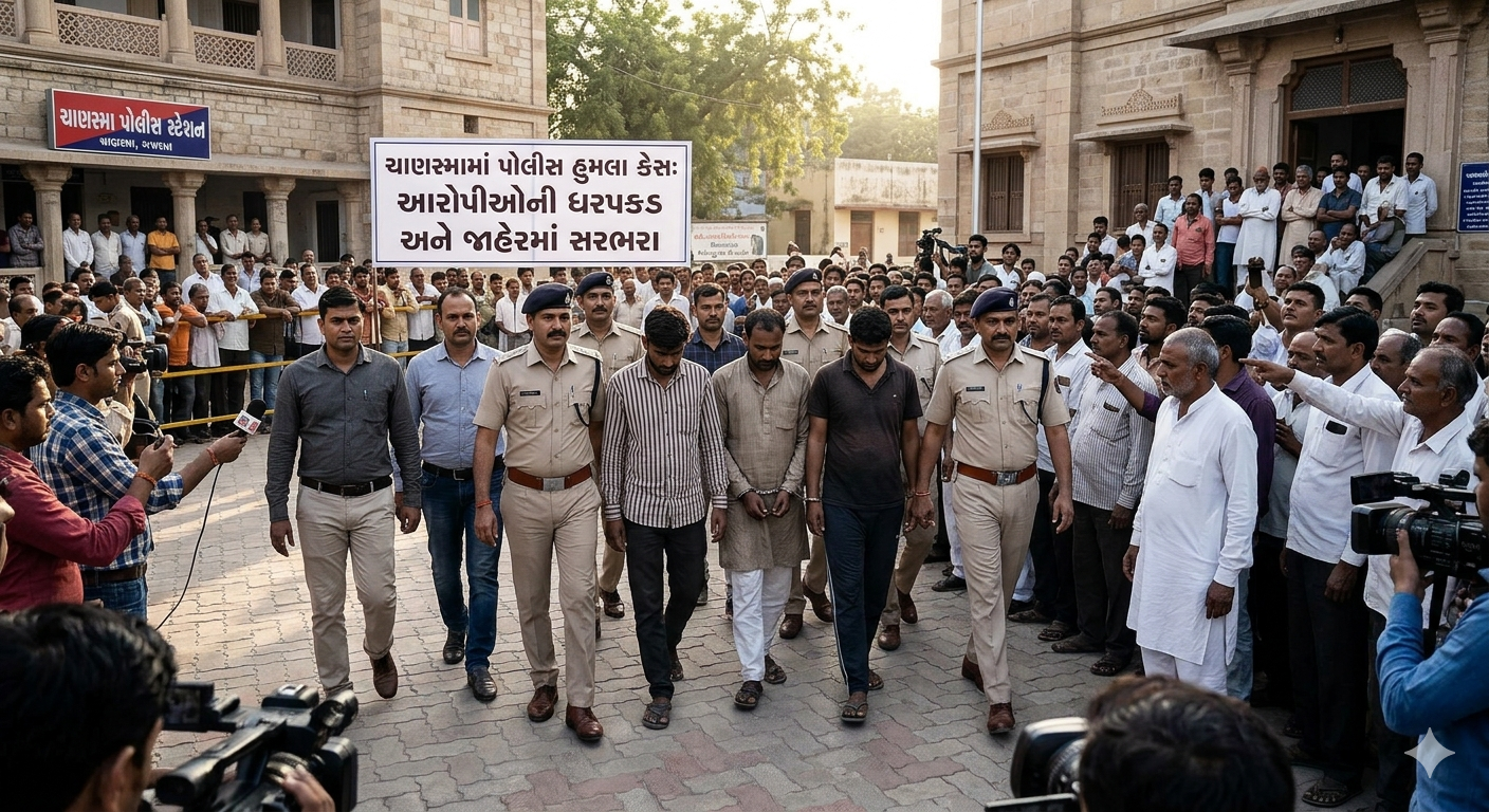 ચાણસ્મામાં ટોળાના હુમલાથી ભાગેલ 8 પોલીસ સસ્પેન્ડ થયા બાદ, આજે આરોપીને પકડીને જાહેરમાં સરભરા કરી