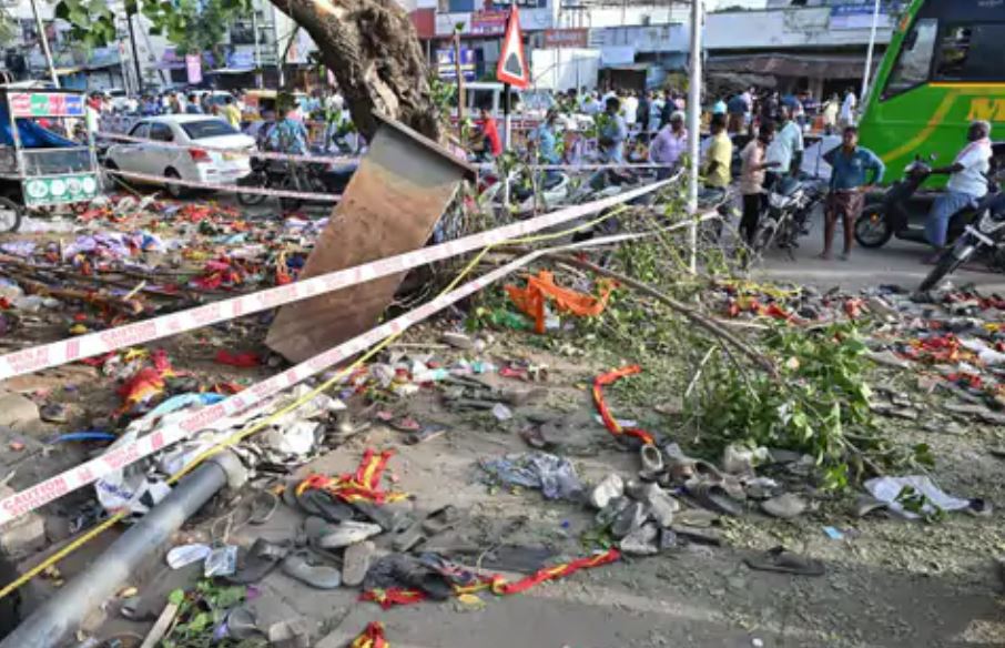 27 સપ્ટેમ્બરના રોજ સાંજે તમિલ અભિનેતા વિજયના રાજકીય પક્ષ, TVKની એક ચૂંટણી રેલીમાં ભાગદોડ મચી ગઈ હતી. તેમાં 18 મહિલાઓ, 13 પુરુષો અને 10 બાળકો સહિત 41 લોકો માર્યા ગયા હતા. 95 લોકો ઘાયલ થયા હતા, જેમાંથી 51 લોકોને આઈસીયુમાં દાખલ કરવામાં આવ્યા હતા.