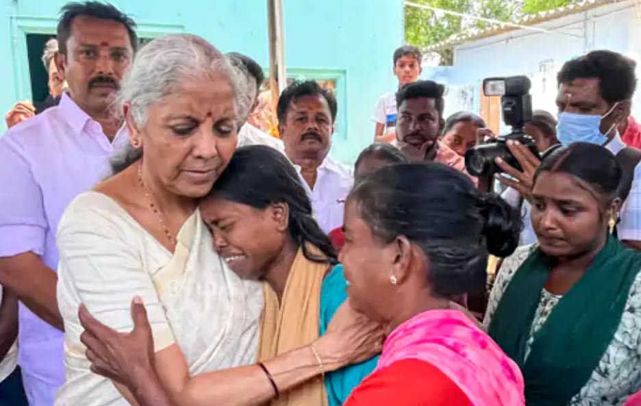 કેન્દ્રીય નાણામંત્રી નિર્મલા સીતારમણ અને કેન્દ્રીય માહિતી અને પ્રસારણ રાજ્યમંત્રી એલ. મુરુગને સોમવારે કરુરના વેલુસામીપુરમની મુલાકાત લીધી હતી, જ્યાં ભાગદોડ મચી હતી, અને પછી ઘાયલોની હાલત પૂછવા માટે હોસ્પિટલ ગયા હતા. તેઓ પુથુર ગામ પહોંચ્યા, જ્યાં નાસભાગમાં પાંચ લોકો મૃત્યુ પામ્યા હતા.