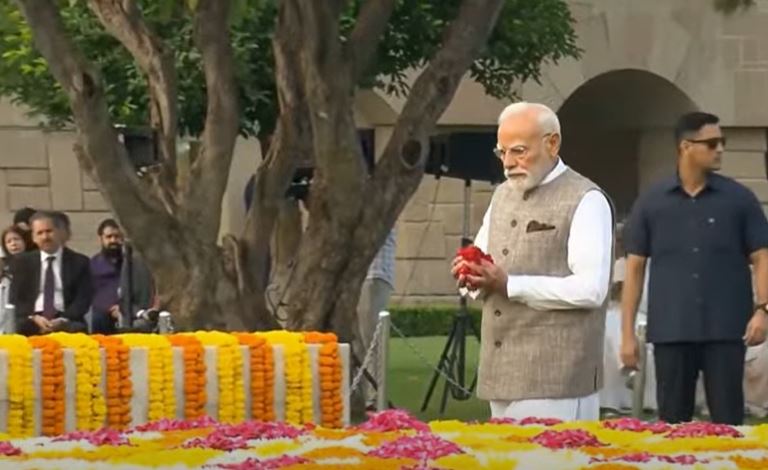પ્રધાનમંત્રી નરેન્દ્ર મોદીએ રાજઘાટ ખાતે મહાત્મા ગાંધીની જન્મજયંતિ પર શ્રદ્ધાંજલિ અર્પણ કરી. અગાઉ, ગાંધી જયંતિ પર બાપુને શ્રદ્ધાંજલિ અર્પણ કરતી વખતે તેમણે લખ્યું, "ગાંધી જયંતિ એ આપણા પ્રિય બાપુના અસાધારણ જીવનને શ્રદ્ધાંજલિ આપવાનો દિવસ છે, જેમના આદર્શોએ માનવ ઇતિહાસનો માર્ગ બદલી નાખ્યો. તેમણે દર્શાવ્યું કે હિંમત અને સરળતા કેવી રીતે મહાન પરિવર્તનના સાધન બની શકે છે. તેમણે સેવા અને કરુણાની શક્તિને લોકોને સશક્ત બનાવવા માટે આવશ્યક માન્યું. વિકસિત ભારત બનાવવાના અમારા પ્રયાસમાં અમે તેમના માર્ગ પર ચાલતા રહીશું."