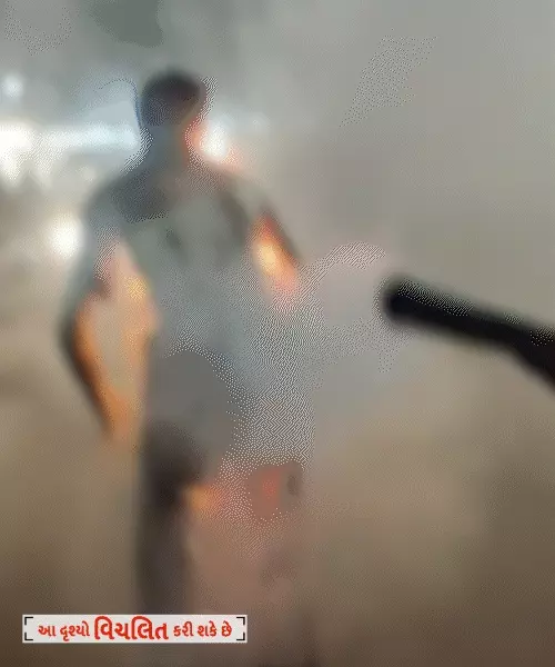 યુવકે આગ લગાડ્યા બાદ શું બન્યું એ દૃશ્યો વીડિયોમાં કેદ યુવક આગ લાગ્યા બાદ પહેલા માળેથી નીચે પડ્યો હતો, જે દરમિયાન ત્યાં હાજર લોકોએ તેનો વીડિયો પોતાના મોબાઈલમાં કેદ કર્યો હતો, જેમાં દેખાઈ રહ્યું છે કે યુવક ડેન્ટલ ક્લિનિક પર નીચે પડ્યા બાદ ચાલતો ચાલતો રોડ પર આવી જાય છે અને આજુબાજુના લોકો પાણી, સાલ અને ફાયર એક્સટિંગ્વિશર વડે આગને ઓલવવાનો પ્રયાસ કરી રહ્યા હતા. એ દરમિયાન ફાયર એક્સટિંગ્વિશરથી આગ ઓલવાતાં યુવક ધુમાડાથી ઢંકાયેલો અને પોતાના બળેલા શરીરને વારંવાર જોઈ રહ્યો હતો. એ બાદ લોકોએ તાત્કાલિક 108 એમ્બ્યુલન્સને બોલાવી તેને સારવાર અર્થે ખસેડ્યો હતો.