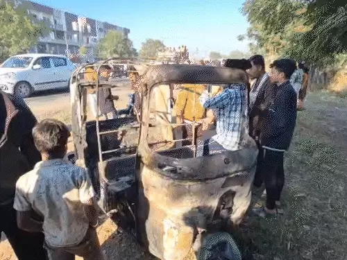 રિક્ષા-બાઇક વચ્ચે ટક્કર બાદ ભીષણ આગ, CCTV:બ્રેક મારવા જતાં રિક્ષા પલટી, અંદર બેઠેલી મહિલા ફસાઈ જતાં જીવતી ભૂંજાઈ, 3 લોકો ગંભીર રીતે દાઝ્યા, અંકલેશ્વર-વાલિયા રોડ પરની ઘટના